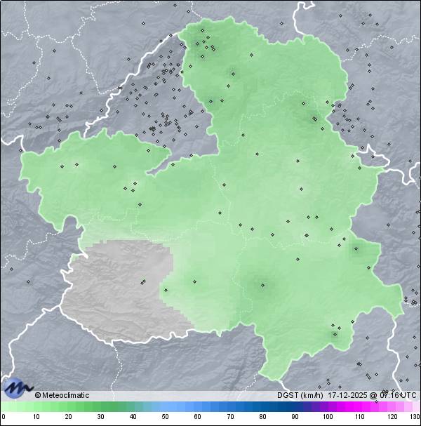 | Actualizado: 05:34 UTC | 8,9°C 95% | 9,0 °C / 95% | | 8,6°C / 95% | | 3 km/h E | | 18 km/h | | 1.017 hPa | | 0,2 mm |