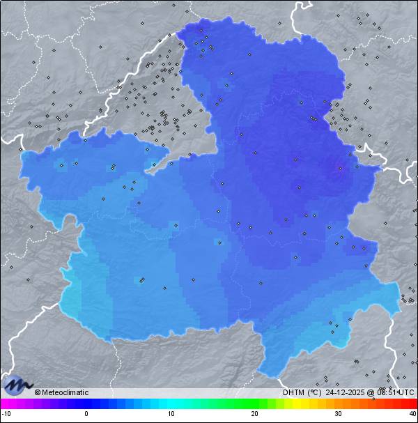 | Actualizado: 01:13 UTC | 2,6°C 93% | 6,8 °C / 96% | | 1,9°C / 88% | | 1.008 hPa |