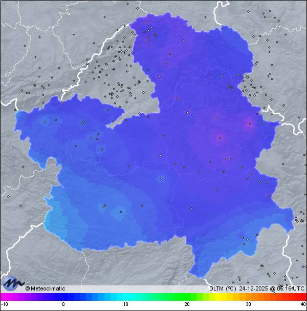 | Actualizado: 01:13 UTC | 2,6°C 93% | 6,8 °C / 96% | | 1,9°C / 88% | | 1.008 hPa |