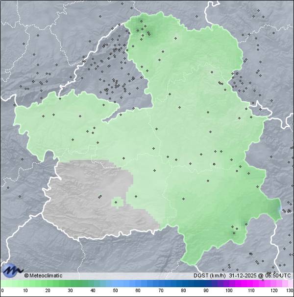 | Actualizado: 01:49 UTC | 4,8°C 95% | 5,0 °C / 97% |  | | 3,8°C / 95% | | 2 km/h E | | 9 km/h | | 1.020 hPa |