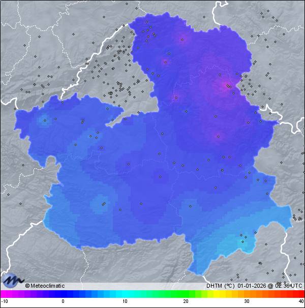 | Niebla heladora | | Actualizado: 00:43 UTC | -2,9°C 96% | -1,5 °C / 96% | | -3,0°C / 95% | | Calma | | 4 km/h | | 1.024 hPa |