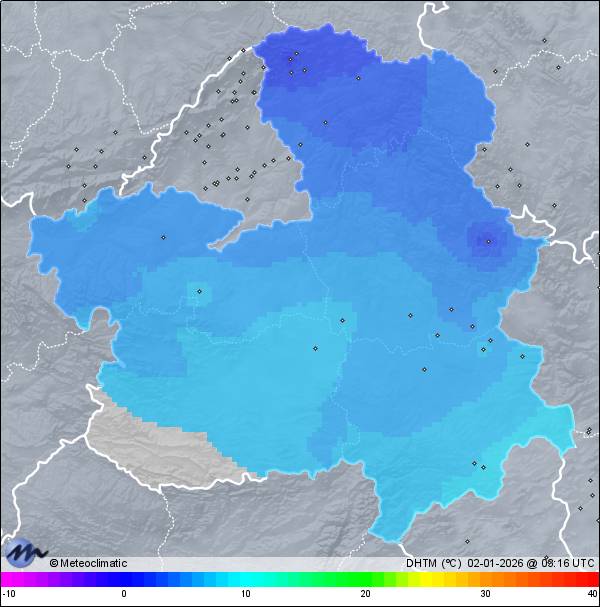 | Escarcha | | Actualizado: 01:28 UTC | 1,8°C 91% | 1,9 °C / 92% | | 1,4°C / 90% | | Calma | | 9 km/h | | 1.019 hPa |