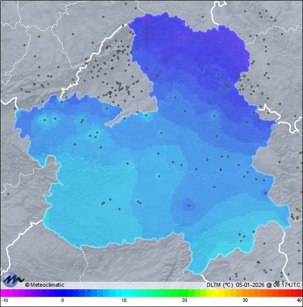 | 04-01-2026 | | | Máx. | Mín. | | | Temperatura | 5,9 | 2,5 | °C | | Humedad | 99 | 92 | % | | Viento | 13 | n/a | km/h | | Precipitación | 0,3 | mm |