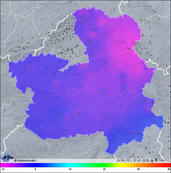 | 06-01-2026 | | | Máx. | Mín. | | | Temperatura | 6,7 | -3,9 | °C | | Humedad | 84 | 35 | % | | Viento | 12 | n/a | km/h | | Presión | 1.024 | 1.016 | hPa | | Precipitación | 0,0 | mm |