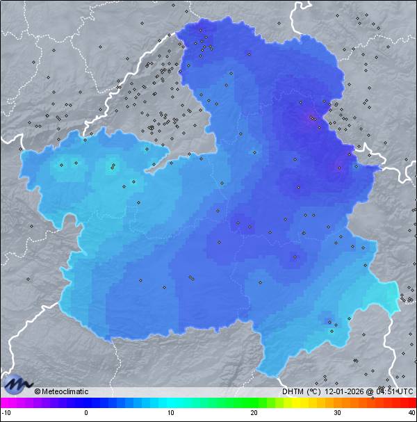 | Escarcha | | Actualizado: 01:19 UTC | -1,1°C 95% | -0,6 °C / 95% | | -1,2°C / 94% | | Calma | | 0 km/h | | 1.025 hPa |