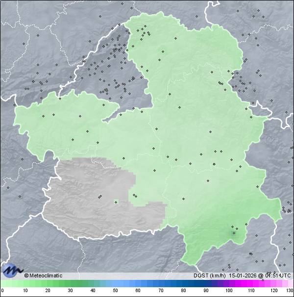 | Actualizado: 00:15 UTC | 5,5°C 92% | 6,3 °C / 93% | | 5,1°C / 89% | | Calma | | 4 km/h | | 1.021 hPa |