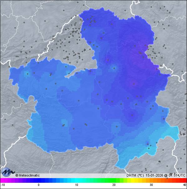 | Niebla heladora | | Actualizado: 00:28 UTC | -3,1°C 98% | -2,9 °C / 98% |  | | -3,5°C / 98% | | Calma | | 2 km/h | | 1.027 hPa |
