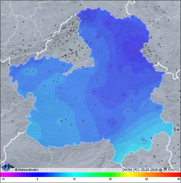 | Actualizado: 00:17 UTC | 9,8°C 64% | 9,8 °C / 66% | | 9,4°C / 64% | | 11 km/h N | | 34 km/h | | 1.010 hPa |