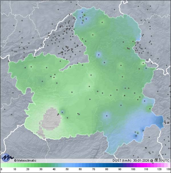 | Actualizado: 00:58 UTC | 7,6°C 75% | 8,5 °C / 75% | | 7,5°C / 71% | | 6 km/h SW | | 26 km/h | | 1.017 hPa |