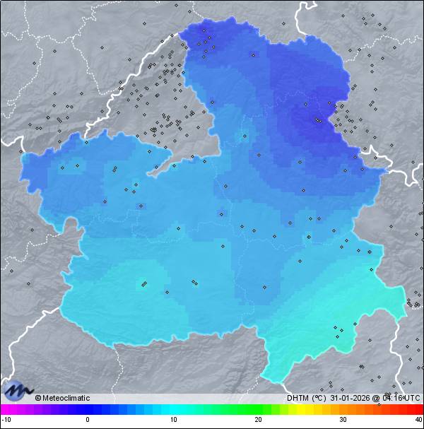 | Escarcha | | Actualizado: 00:29 UTC | 0,1°C 81% | 0,7 °C / 84% | | 0,1°C / 80% | | 3 km/h NW | | 31 km/h | | 1.011 hPa | | 0,5 mm |