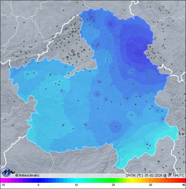 | Escarcha | | Actualizado: 05:13 UTC | -0,3°C 87% | 1,9 °C / 90% | | -1,7°C / 79% | | Calma | | 8 km/h | | 1.017 hPa |
