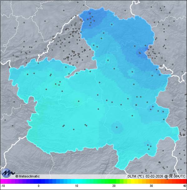 | Actualizado: 00:32 UTC | 6,5°C 85% | 6,8 °C / 87% | | 5,8°C / 84% | | 8 km/h S | | 24 km/h | | 1.006 hPa |