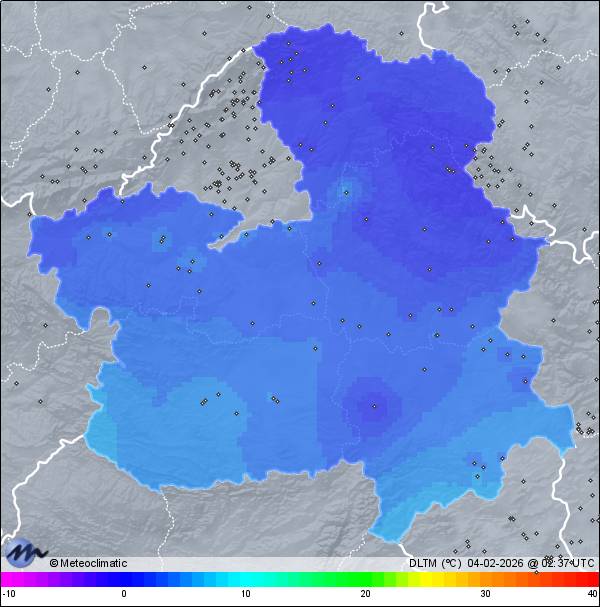 | Actualizado: 00:43 UTC | 4,8°C 75% | 4,9 °C / 76% | | 4,5°C / 75% | | 994 hPa |