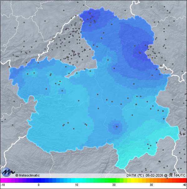 | Actualizado: 01:13 UTC | 4,1°C 95% | 4,7 °C / 95% | | 4,0°C / 94% | | Calma | | 5 km/h | | 1.003 hPa |