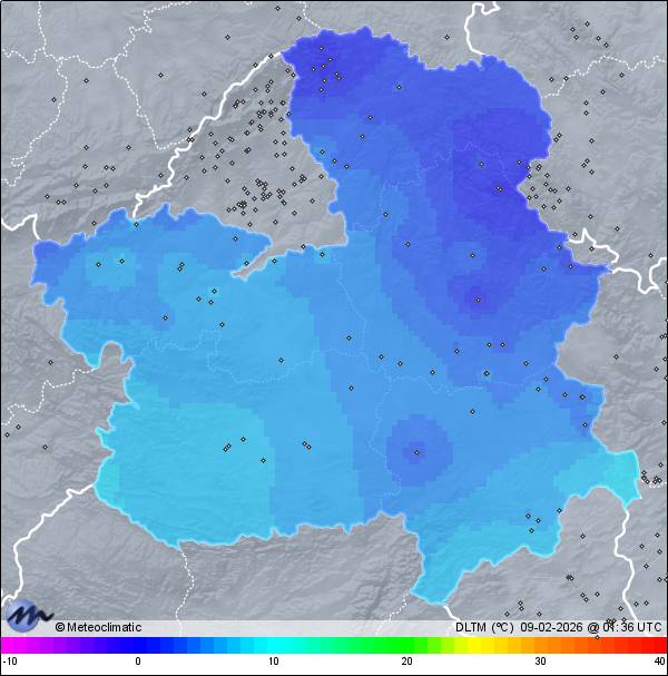 | Actualizado: 00:17 UTC | 4,6°C 70% | 9,3 °C / 89% | | 3,1°C / 61% | | 5 km/h SW | | 45 km/h | | 1.013 hPa | | 1,4 mm |