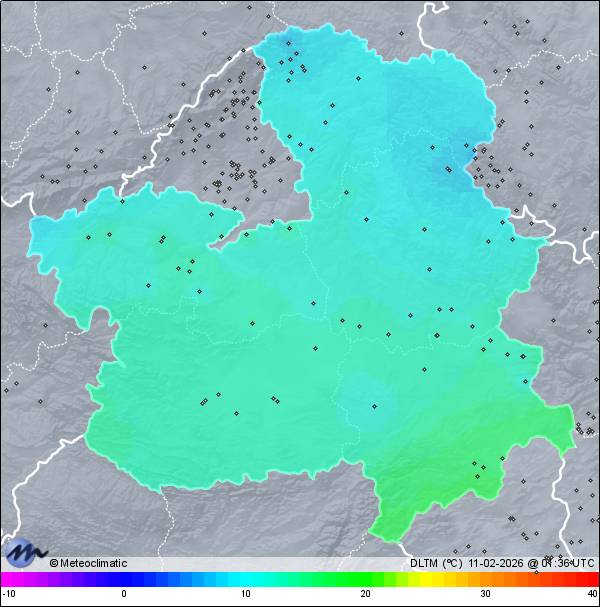 | Actualizado:10-02-2026 23:40 UTC | 12,7°C 94% | 13,7 °C / 97% | | 11,7°C / 93% | | 14 km/h W | | 47 km/h | | 1.016 hPa | | 10,8 mm |