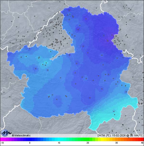 | Actualizado: 00:48 UTC | -2,6°C 78% | -0,4 °C / 85% |  | | -2,8°C / 71% | | 3 km/h W | | 21 km/h | | 1.026 hPa |