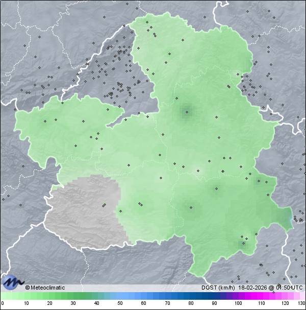 | Actualizado: 00:19 UTC | 9,4°C 86% | 9,7 °C / 87% | | 8,6°C / 83% | | 2 km/h ENE | | 8 km/h | | 1.020 hPa |