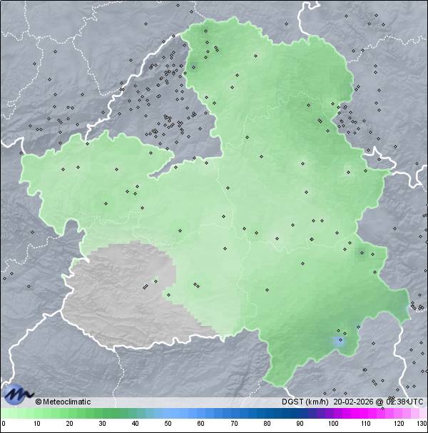 | Actualizado: 01:05 UTC | 3,8°C 77% | 5,0 °C / 79% |  | | 3,5°C / 72% | | 7 km/h ESE | | 13 km/h | | 1.029 hPa |
