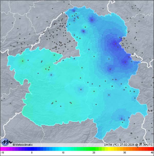 | Actualizado: 00:13 UTC | 3,2°C 73% | 3,4 °C / 73% | | 3,2°C / 72% | | 5 km/h W | | 7 km/h | | 1.027 hPa |