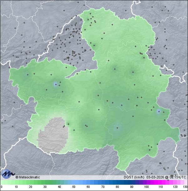 | Actualizado: 00:20 UTC | 8,8°C 93% | 9,0 °C / 93% |  | | 8,7°C / 93% | | 18 km/h ENE | | 43 km/h | | 1.018 hPa |