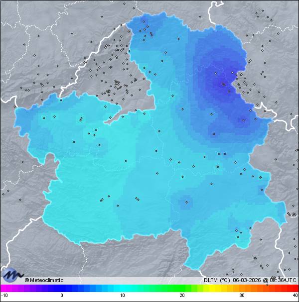 | Actualizado: 00:30 UTC | 5,9°C 93% | 5,9 °C / 94% | | 4,8°C / 93% | | 6 km/h NNE | | 10 km/h | | 1.012 hPa |