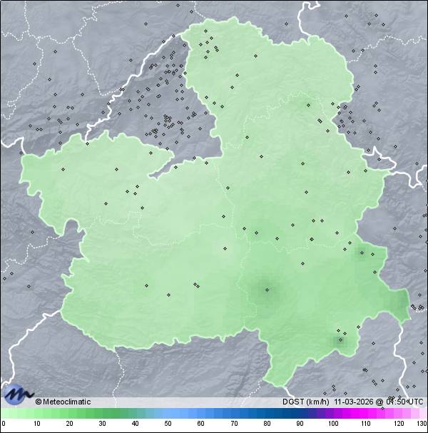 | Actualizado: 00:33 UTC | 9,3°C 73% | 9,4 °C / 73% | | 9,2°C / 73% | | 11 km/h ENE | | 29 km/h | | 1.019 hPa | | 0,6 mm |