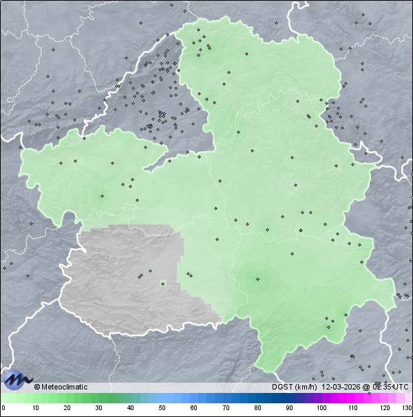 | Actualizado: 00:28 UTC | 3,9°C 93% | 5,7 °C / 93% | | 3,9°C / 90% | | Calma | | 2 km/h | | 1.030 hPa |