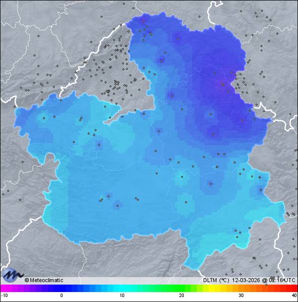 | Actualizado: 00:35 UTC | 7,7°C 82% | 9,4 °C / 82% |  | | 7,7°C / 76% | | Calma | | 5 km/h | | 1.028 hPa |