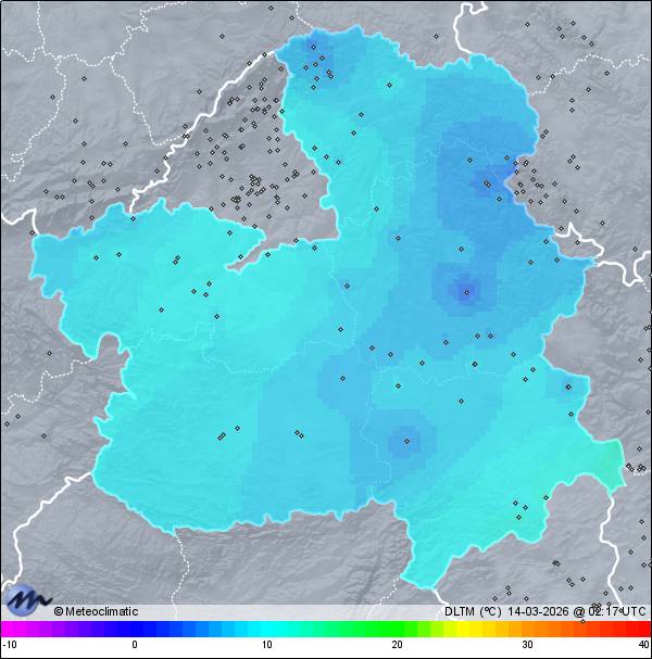 | Actualizado: 00:31 UTC | 7,3°C 81% | 10,7 °C / 81% | | 7,3°C / 67% | | Calma | | 13 km/h | | 1.012 hPa |