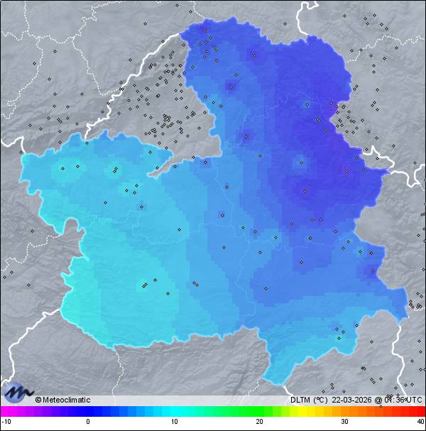| Actualizado: 00:13 UTC | 5,8°C 90% | 5,8 °C / 92% | | 4,4°C / 90% | | 2 km/h NNE | | 5 km/h | | 1.015 hPa |
