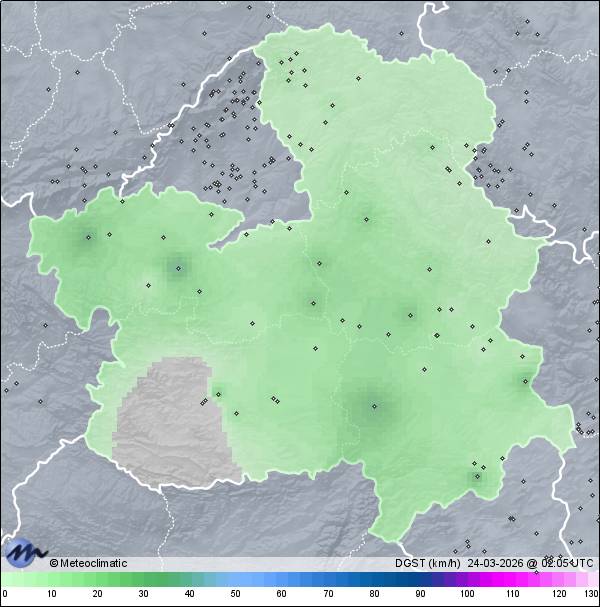 | Actualizado: 00:32 UTC | 5,7°C 94% | 6,7 °C / 95% | | 5,7°C / 94% | | Calma | | 3 km/h | | 1.023 hPa | | 0,2 mm |