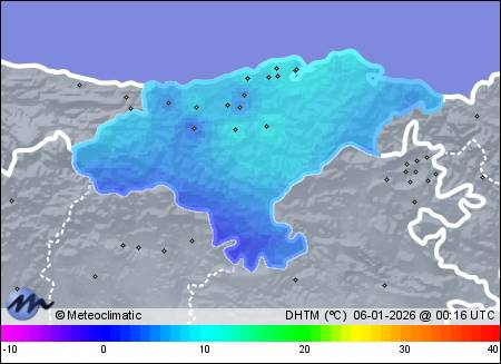 | Escarcha | | Actualizado: 08:43 UTC | 1,9°C 97% | 1,9 °C / 99% | | 0,6°C / 95% | | Calma | | 0 km/h | | 1.017 hPa |