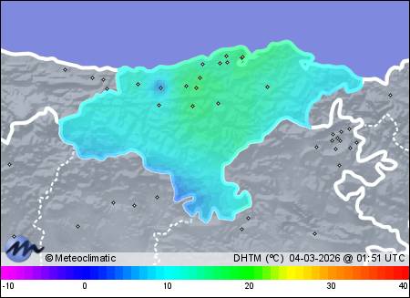 | Actualizado: 13:58 UTC | 16,6°C 49% | 17,2 °C / 96% | | 2,4°C / 47% | | 3 km/h ENE | | 17 km/h | | 1.017 hPa |