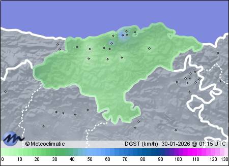 | Actualizado: 00:02 UTC | 5,1°C 85% | 12,4 °C / 98% | | 3,5°C / 67% | | Calma | | 31 km/h | | 1.009 hPa | | 3,8 mm |