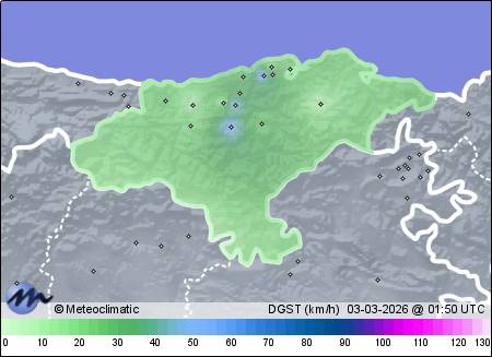 | Actualizado: 13:30 UTC | 9,4°C 80% | 9,4 °C / 95% | | 4,8°C / 72% | | 13 km/h SSE | | 64 km/h | | 1.024 hPa |