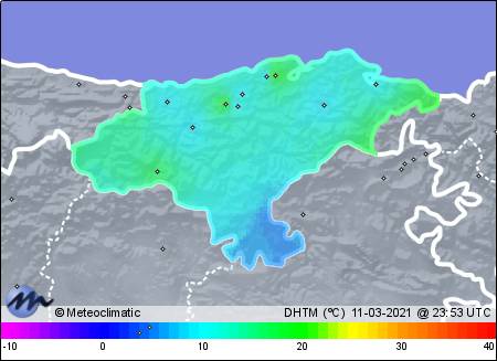 | 11-03-2021 | | | Máx. | Mín. | | | Temperatura | 18,8 | 7,9 | °C | | Humedad | 92 | 65 | % | | Viento | 44 | n/a | km/h | | Presión | 1.025 | 1.019 | hPa | | Precipitación | 1,6 | mm |