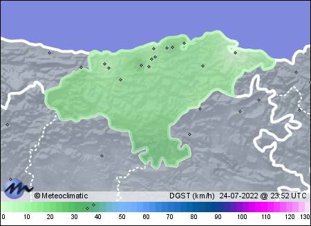 | 24-07-2022 | | | Máx. | Mín. | | | Temperatura | 25,6 | 15,9 | °C | | Humedad | 89 | 62 | % | | Viento | 32 | n/a | km/h | | Presión | 1.021 | 1.016 | hPa | | Precipitación | 0,0 | mm |