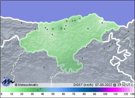 | 07-09-2022 | | | Máx. | Mín. | | | Temperatura | 25,1 | 16,1 | °C | | Humedad | 95 | 45 | % | | Viento | 26 | n/a | km/h | | Presión | 1.017 | 1.013 | hPa | | Precipitación | 1,5 | mm |