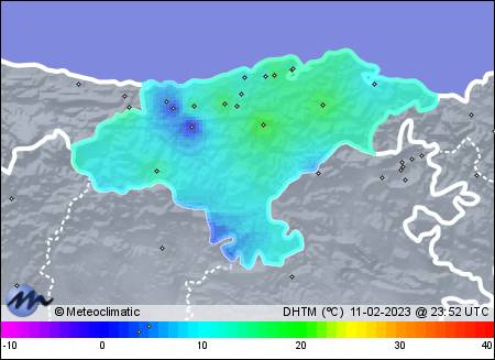 | 11-02-2023 | | | Máx. | Mín. | | | Temperatura | 14,3 | -7,1 | °C | | Humedad | 99 | 45 | % | | Viento | 9 | n/a | km/h | | Presión | 1.032 | 1.028 | hPa |