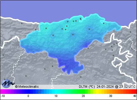 | 24-01-2024 | | | Máx. | Mín. | | | Temperatura | 17,3 | 9,9 | °C | | Humedad | 95 | 76 | % | | Viento | 16 | n/a | km/h | | Presión | 1.038 | 1.034 | hPa | | Precipitación | 0,0 | mm |