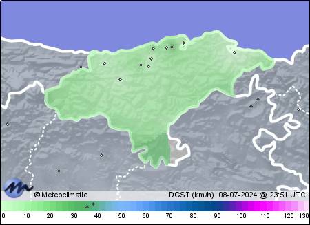 | 08-07-2024 | | | Máx. | Mín. | | | Temperatura | 24,3 | 13,6 | °C | | Humedad | 100 | 55 | % | | Viento | 31 | n/a | km/h | | Presión | 1.014 | 1.010 | hPa | | Precipitación | 0,0 | mm |
