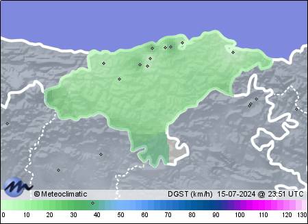 | 15-07-2024 | | | Máx. | Mín. | | | Temperatura | 23,3 | 16,9 | °C | | Humedad | 97 | 68 | % | | Viento | 31 | n/a | km/h | | Presión | 1.019 | 1.006 | hPa | | Precipitación | 0,8 | mm |
