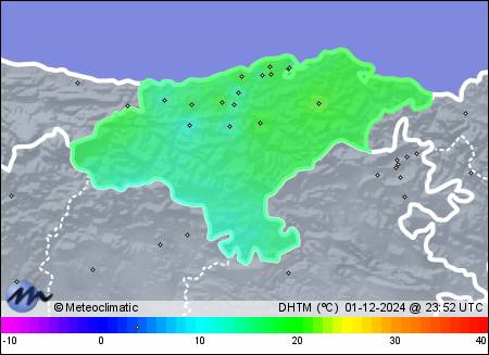 | 01-12-2024 | | | Máx. | Mín. | | | Temperatura | 16,8 | 7,2 | °C | | Humedad | 99 | 84 | % | | Viento | 11 | n/a | km/h | | Presión | 1.025 | 1.022 | hPa |