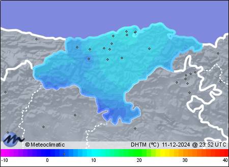 | 11-12-2024 | | | Máx. | Mín. | | | Temperatura | 7,9 | 3,7 | °C | | Humedad | 99 | 85 | % | | Viento | 5 | n/a | km/h | | Presión | 1.023 | 1.021 | hPa |