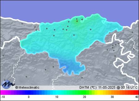 | 10-05-2025 | | | Máx. | Mín. | | | Temperatura | 15,7 | 9,2 | °C | | Humedad | 98 | 81 | % | | Viento | 21 | n/a | km/h | | Presión | 1.012 | 1.008 | hPa | | Precipitación | 7,9 | mm |