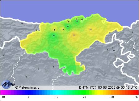 | 02-08-2025 | | | Máx. | Mín. | | | Temperatura | 23,2 | 17,1 | °C | | Humedad | 92 | 69 | % | | Viento | 35 | n/a | km/h | | Presión | 1.022 | 1.020 | hPa | | Precipitación | 0,0 | mm |