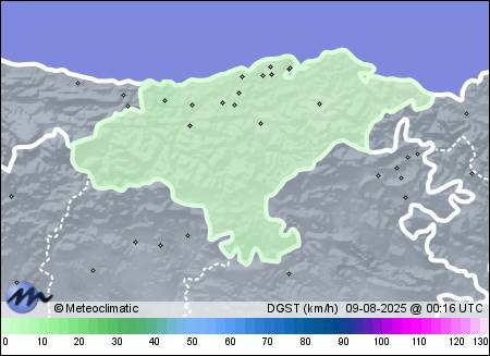 | 08-08-2025 | | | Máx. | Mín. | | | Temperatura | 24,9 | 18,9 | °C | | Humedad | 93 | 65 | % | | Viento | 40 | n/a | km/h | | Presión | 1.022 | 1.019 | hPa | | Precipitación | 0,0 | mm |