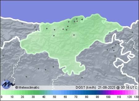 | 20-08-2025 | | | Máx. | Mín. | | | Temperatura | 22,2 | 15,7 | °C | | Humedad | 97 | 77 | % | | Viento | 34 | n/a | km/h | | Presión | 1.017 | 1.015 | hPa | | Precipitación | 4,2 | mm |