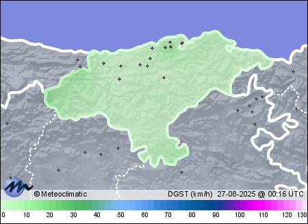| 26-08-2025 | | | Máx. | Mín. | | | Temperatura | 24,3 | 18,1 | °C | | Humedad | 97 | 76 | % | | Viento | 24 | n/a | km/h | | Presión | 1.016 | 1.014 | hPa | | Precipitación | 1,0 | mm |